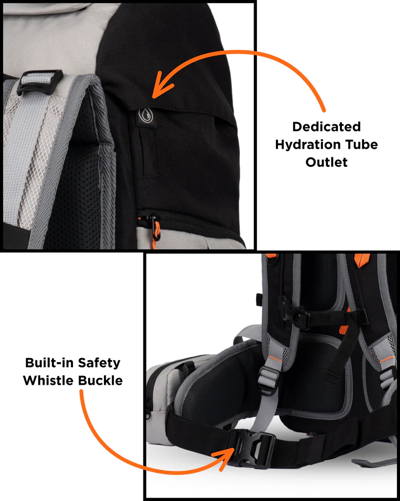 βœ”οΈ Water-Resistant + Rain Cover – ready for any weather