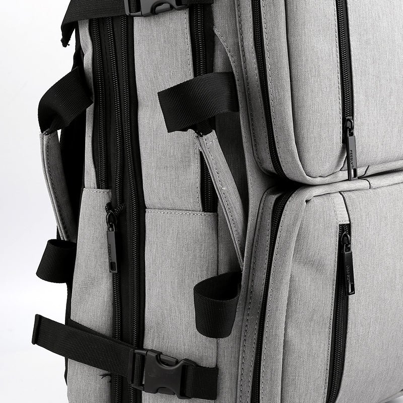 The Voyager Ultra Fit Plus is designed for travel efficiency — featuring compression straps to reduce bulk, dual front compartments for easy access, and a luggage strap to slide it over your suitcase handle.